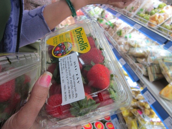 - Số lượng ít (trên kệ bày bán chỉ có từ 10 đến 20 hộp dâu, ít hơn so với các mặt hàng cà chua, nho, táo,…)